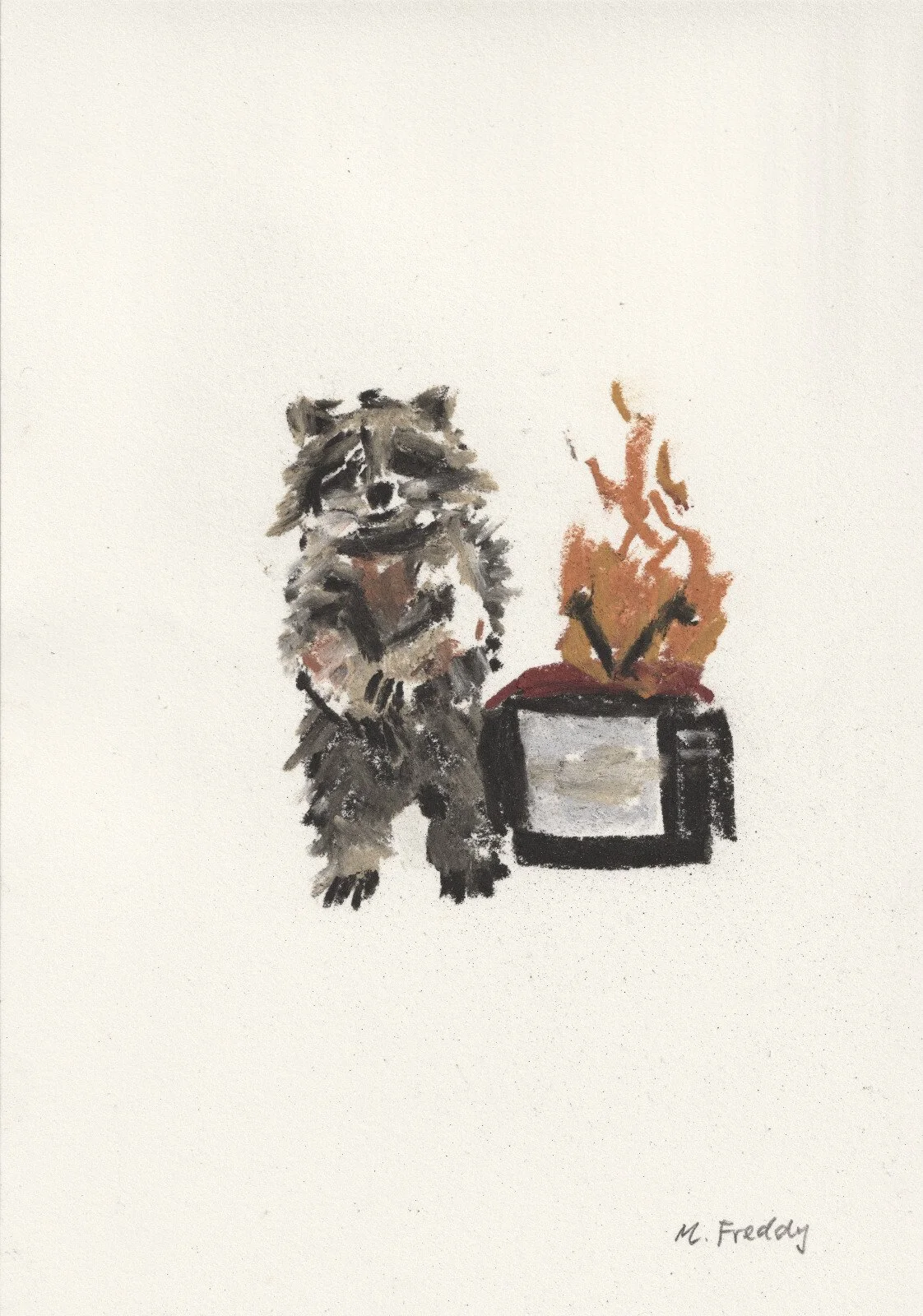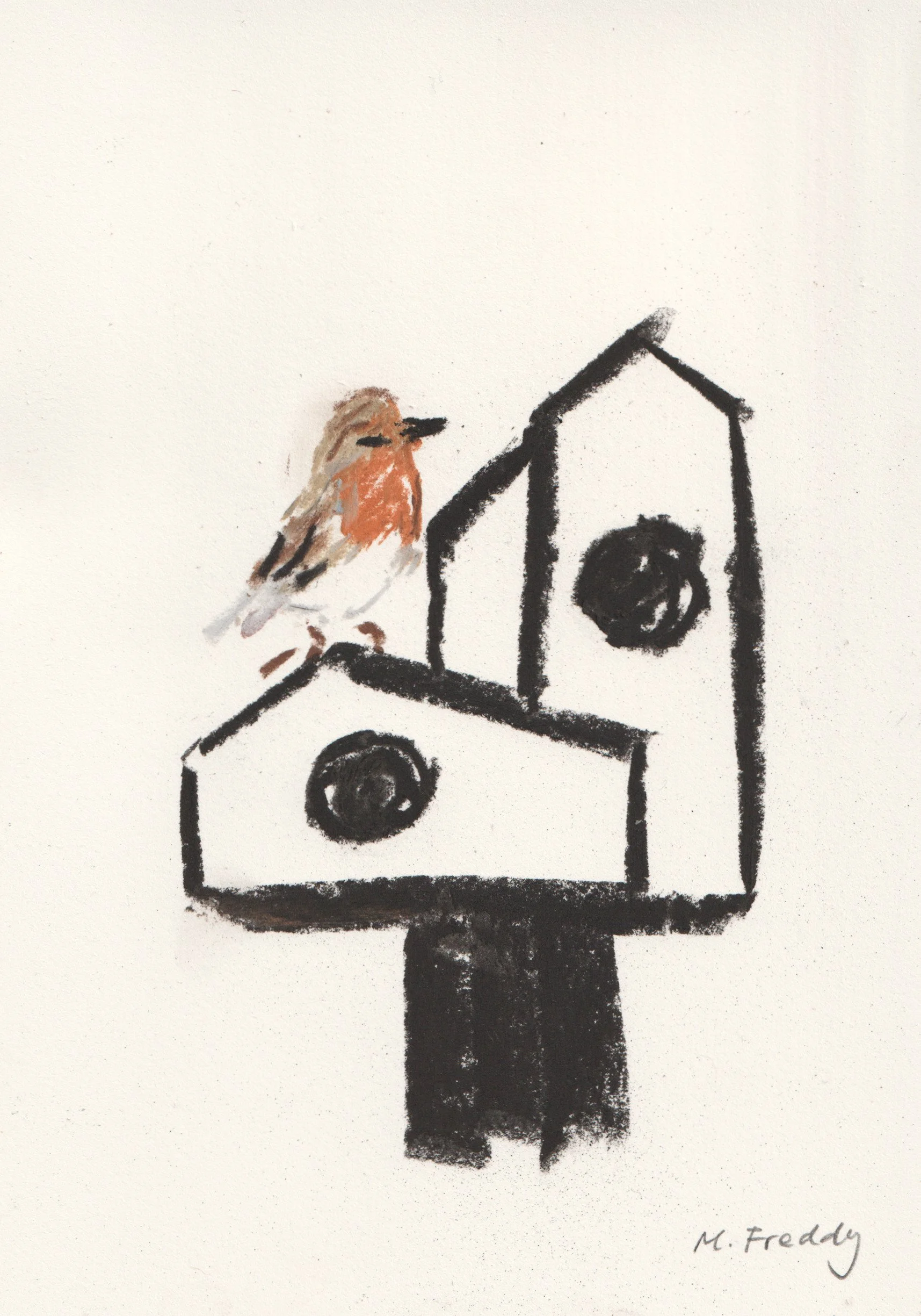Light exposure, especially in combination with ultraviolet (UV) radiation, can cause colours to fade. M. Freddy’s original artworks use light-safe, non-toxic chalk pastels from Chalk Copenhagen. Nevertheless, we strongly recommend keeping artworks away from direct sunlight.